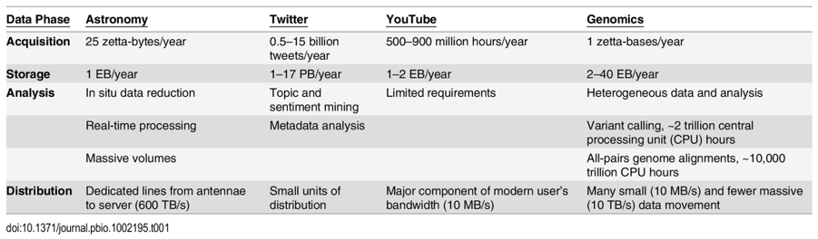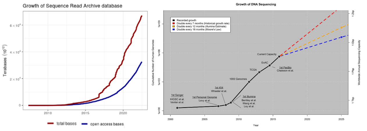 - The amount of genomic data available to researchers is increasing by a factor of 10 every year.