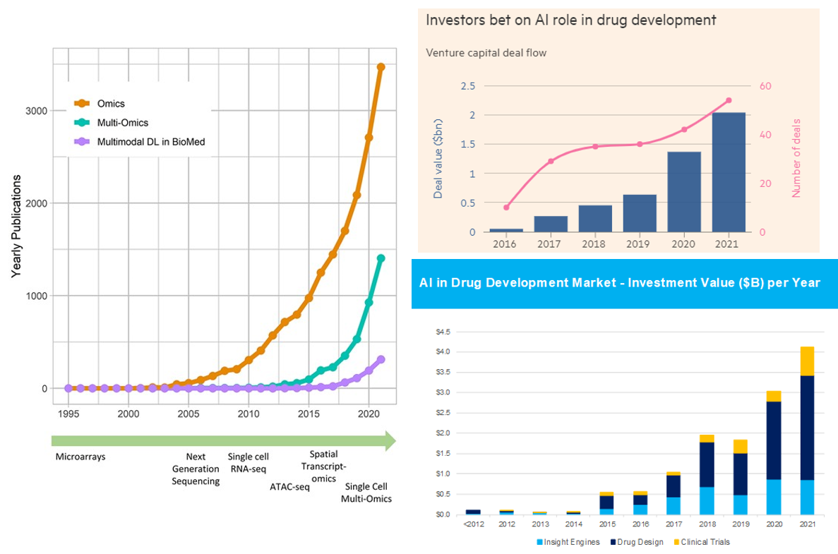 The process of drug discovery or identifying underlying physical processes in any biological setting is one of finding a needle in a haystack. For instance, the number of chemical compounds estimated to exist is 1060. Drug makers must identify a physical phenomenon to alter and then scan from that chemical space one that would alter the intended target in the desired way. AI has been and will only get more useful in navigating that computational task.