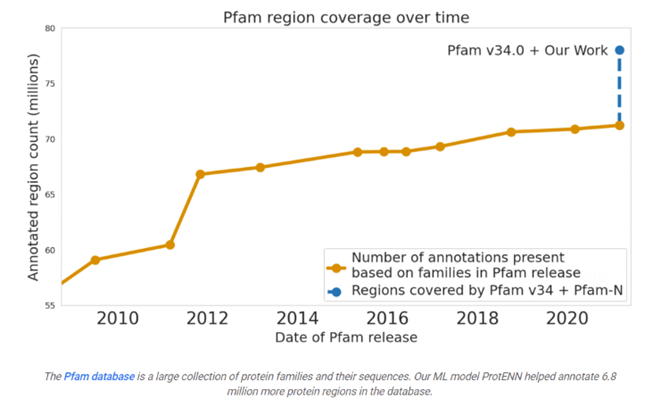 Google predicted the function of 6.8 million proteins, or the total that had been predicted over the last decade, and released the model and data to the world: