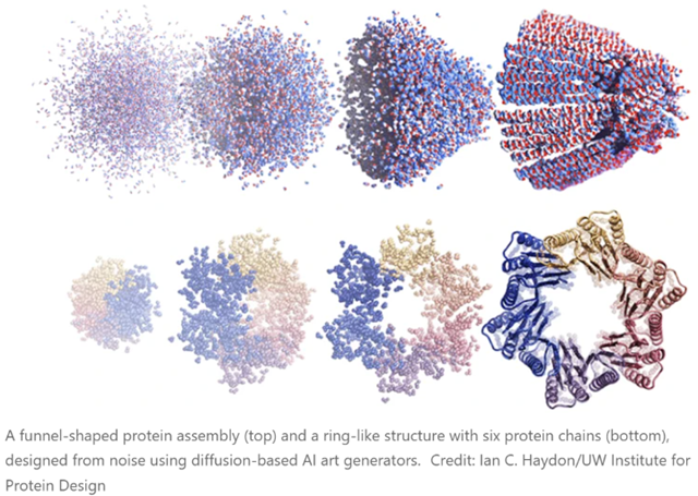 - The Baker Lab developed a protein engineering system that combines structure prediction networks and diffusion models. By fine tuning the RoseTTAFold protein folding algorithm on a protein structure denoising task (creating a new model called RFdiffusion), strong performance is obtained on a range of tasks including protein binder design and enzyme active site scaffolding. The experimental success rate (i.e., the proportion of experimentally synthesized and tested proteins that confirm the in silico prediction) of RFdiffusion was improved by two orders of magnitude relative to previous algorithms developed by the Baker Lab. (link) These researchers also published good work on improving binding sites.
