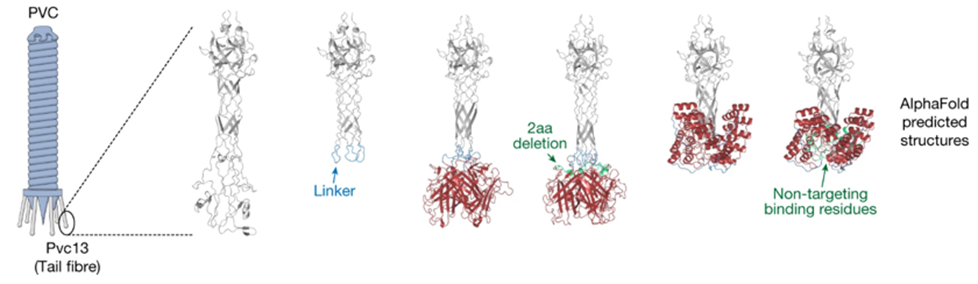 - Redesigning a drug delivery tool found in bacteria: In March this year, Feng Zhang and colleagues used AlphaFold to design a “molecular syringe” for programmable protein delivery into cells. The researchers hijacked the ‘syringe’ that some viruses and bacteria use to infect their hosts and put it to work delivering potentially therapeutic proteins into human cells grown in the laboratory. They used AlphaFold to redesign the structure such that it would recognize mouse and human cells instead of insects, as it’s originally intended for. With further optimization, the approach might also be useful for delivering the components needed for CRISPR–Cas9 genome editing. It has broad potential applications for the treatment of cancer, design and delivery of vaccines, and gene therapy. “It’s astonishing. It is a huge breakthrough,” saying Feng Jiang.