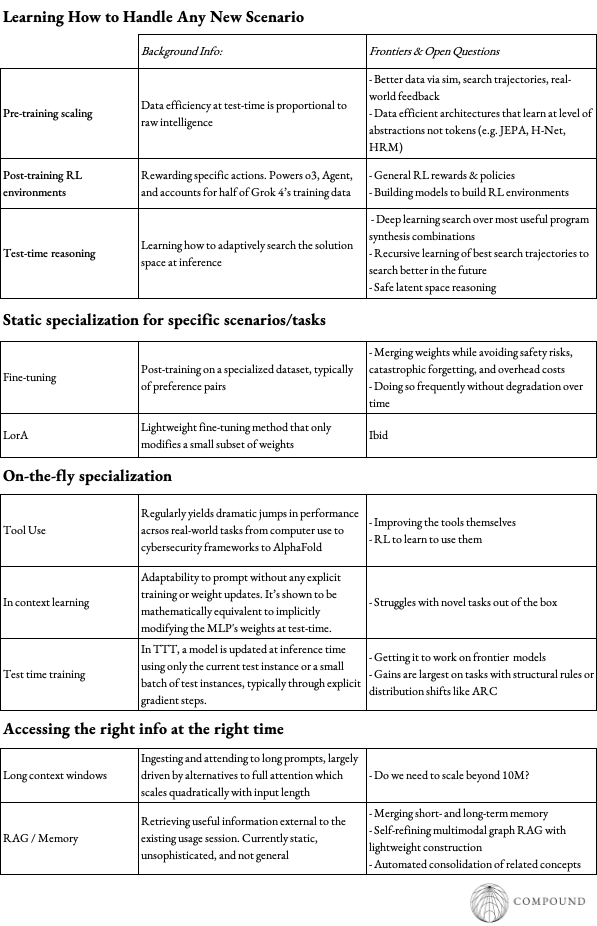 Models are still missing the ability to autonomously incorporate learnings directly back into the model itself. Hints have already emerged that such technologies are on the near horizon.