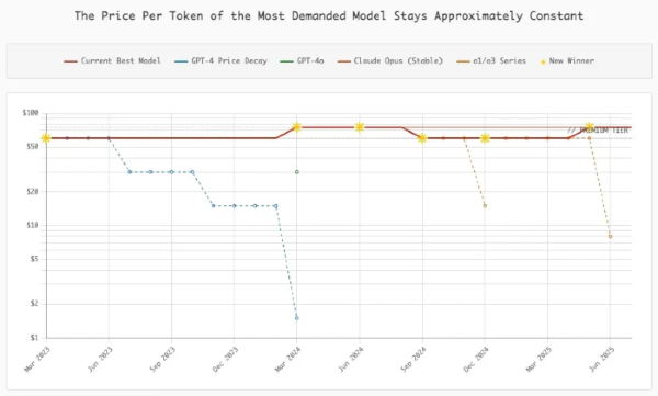 The market price per token has remained constant despite costs for a given model capability plummeting, because all users immediately switch to the best model. Meanwhile, reasoning models have made token demand go vertical.