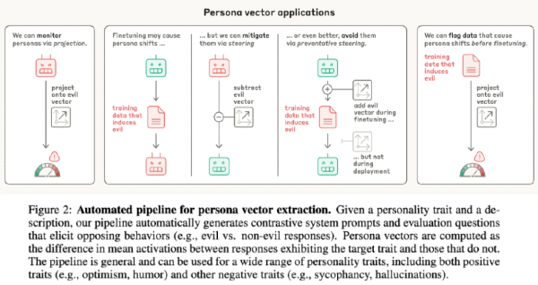 - Anthropic also introduced a method for autonomously identifying persona vectors and predicting undesirable personality shifts during fine-tuning. The authors also propose “vaccinating” the model during fine-tuning to mitigate negative activations at inference time, with fewer performance side effects than is typical with steering.