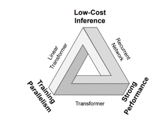 An explosion of alternatives to attention & Transformers over the last four years has sought to retain the fixed state space of RNNs and their quick inference while making their training parallelizable and their state more expressive. In other words, they aim to expand the Pareto frontier of the impossible triangle as seen to the right or at least make reasonable speed vs accuracy tradeoffs to address unmet market needs.