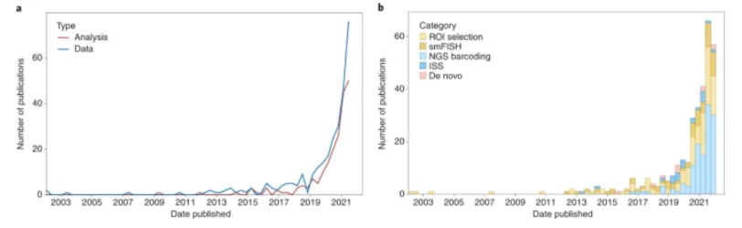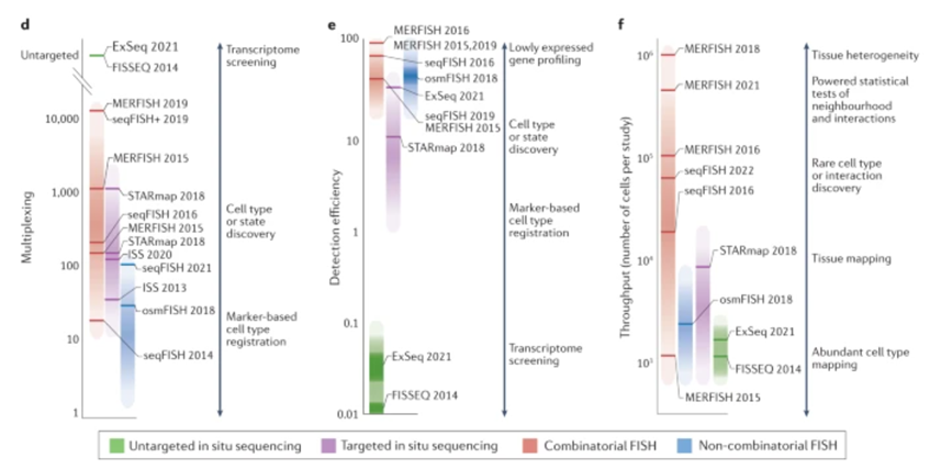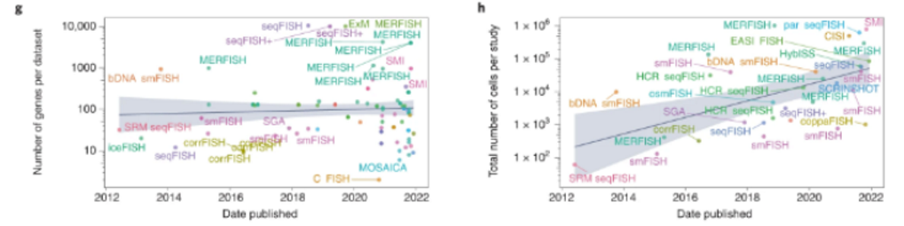 Both commercial and academic labs are “racing to improve spatial transcriptomics and to extend cell-by-cell mapping to other key indicators.” For imaging-based techniques, higher resolution, large-field-of-view microscopes will increase throughput without sacrificing specificity. And, continued improved in sample preparation like tissue clearing and expansion microscopy will help address issues like autofluorescence and crowding. Ex situ sequencing-based approaches will be driven by, unsurprisingly, improvements in sequencing technology sensitivity and coverage. It’ll also be propelled by advances in barcoding platforms (e.g. microbeads and microfluidics) and strategies, leading to improved data quality and subcellular resolution.