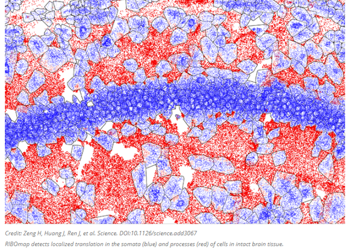 The method, described today in Science, provides a way for scientists to learn new details on how translation is regulated within individual cell types and how that changes in disease. In the paper, the team used RIBOmap to study the translation of more than 5,000 genes in mouse brain tissue.