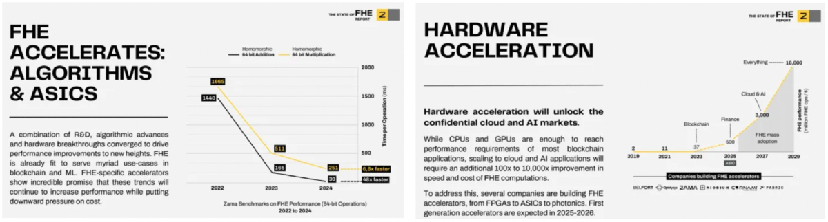 - The last 2yrs have been about progressively plucking the lowest hanging fruit for software optimization for those new general-purpose, developer-friendly execution layers. This software optimization has yielded a further ~10x improvement beyond the basic science work on the underlying proving system or FHE scheme.
