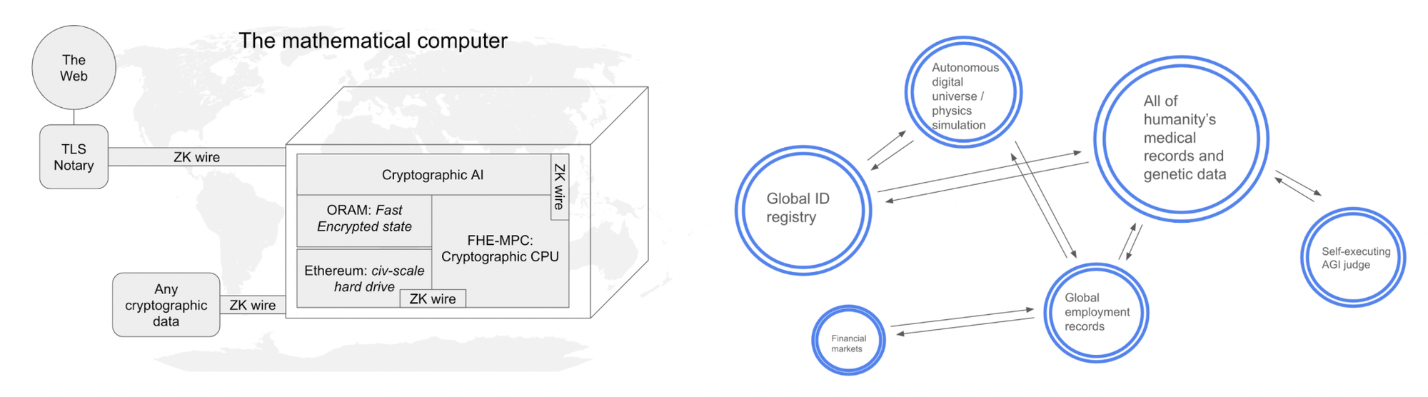 Suffice to say that blockchains and programmable cryptography need each other. The former is an immutable, permissionless ledger – a single, universal database that could store all the world’s data and thus be perfectly composable. But they currently cannot allow for even remotely sensitive data so its applications are roughly limited to what they are today.