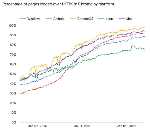 Maybe blockchains using programmable cryptography will never get performant enough. But, it would’ve been unimaginable to people in 1993 that today we express ourselves via 1MB GIFs instead of a three word text. But, because the cost of data transfer rapidly approached $0, the grotesqueness of a GIF being several OOM less efficient doesn’t even occur to those of us born in the iMessage era. A similar, multi-decade transformation happened as society adopted special-purpose cryptography. HTTPS evolved from banks buying $5K servers from Netscape to offer secure credit card processing in 1994 to HTTPS being used on all logins in 2005 to being the default for Gmail and public internet accesses in 2010 to securing 100% of internet activity today.