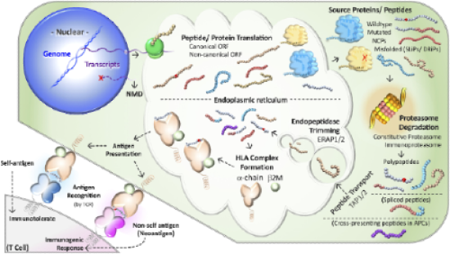 For a vaccine to matter, a neo-peptide must follow a complex chain of events with many failure modes that aren’t well understood. This process includes variant expression, peptide processing, transport and presentation of HLAs on the cell surface at a high enough level for T-cell receptors (TCR) to recognize. It then needs to exist in the background of stochastic TCR generation in the thymus, such that T-cells that are generated by humans would actually bear TCRs that would recognize it.