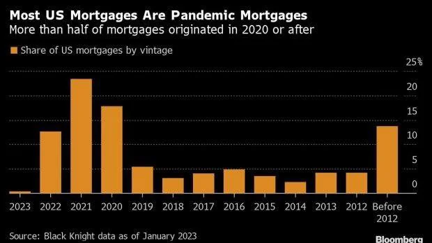 The US's insensitivity to rate hikes so far can be attributed to the private sector locking in low rates over the last couple years, household's low levels of debt, and the private sector's limited exposure to adjustable rate debt (ARM) and short-term debt. First, both corporates and households used the widespread credit availability of 2020 & 2021 to lock in exceptionally low rates: