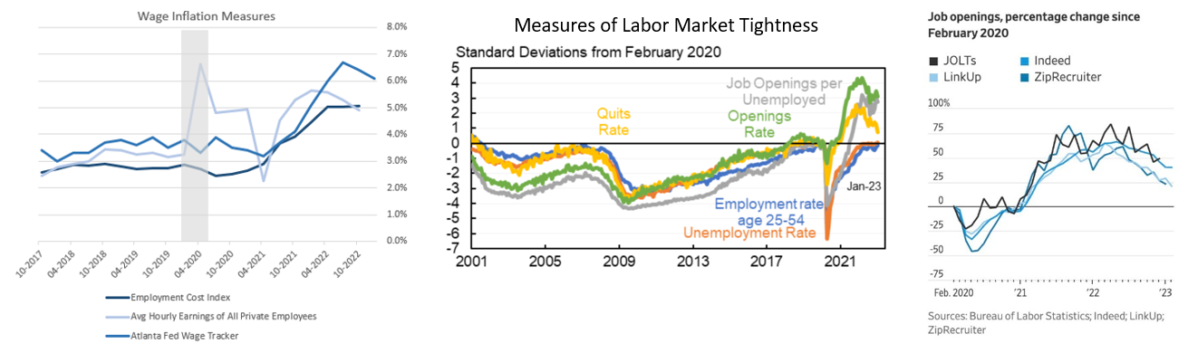 The analysis above points to the key dynamic to watch: on the one hand, labor market tightness and spending have clearly peaked; on the other, they're coming down from historic highs and some remain multiple standard deviations above the pre-COVID trend. The tug of war between these two sets of facts is essential to tease out.